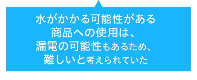• 水がかかる可能性がある商品への使用は、漏電の可能性もあるため、難しいと考えられていた