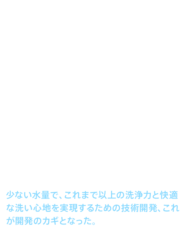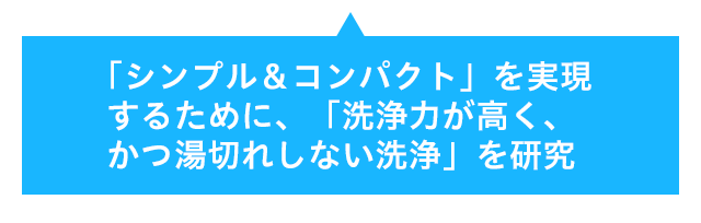 • 「シンプル&コンパクト」を実現するために、「洗浄力が高く、かつ湯切れしない洗浄」を研究