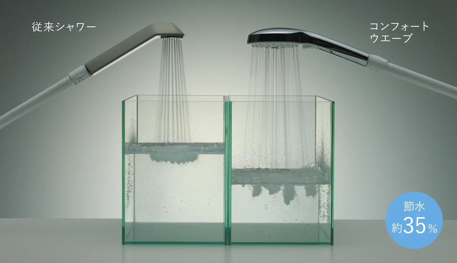 約35%の節水効果を発揮。ウエーブ&スプレー2つの水流で