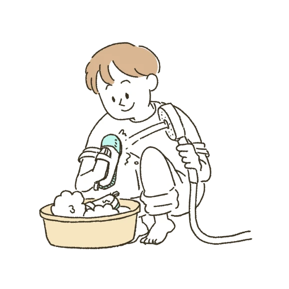 - 息子さん ウォームピラーが上履き洗いにすごく役立っています。以前の普通の吐水モードのシャワーだと水圧が強すぎて、洗うたびに水が飛び散って大変でした。でも、このモードなら水跳ねしにくくて、自分の服などに水が飛び散る心配もありません。さらに、上履きをたわしでこするとき、水を出したままシャワーヘッドを床に置いてもヘッドが暴れないためとても便利です。おかげで手間だった上履き洗いがとてもラクになりました。