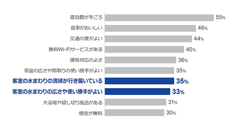 Q.一度宿泊した施設に「また泊まりたい」と思うのは、どのような点を満たした宿泊施設だと思いますか?(複数回答・上位10位を抽出)