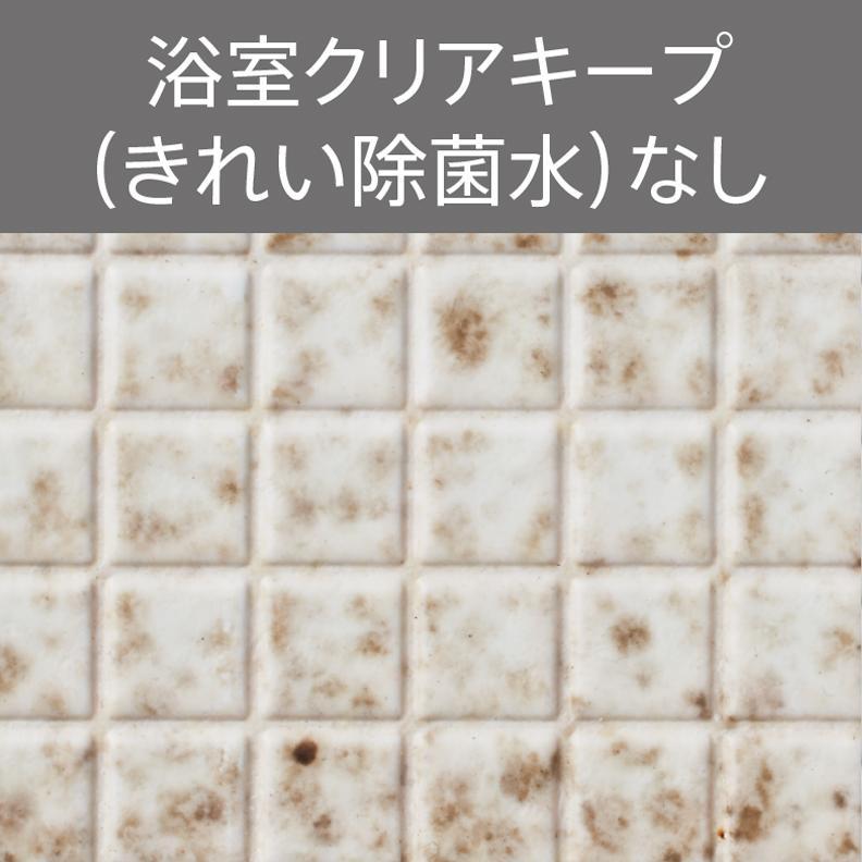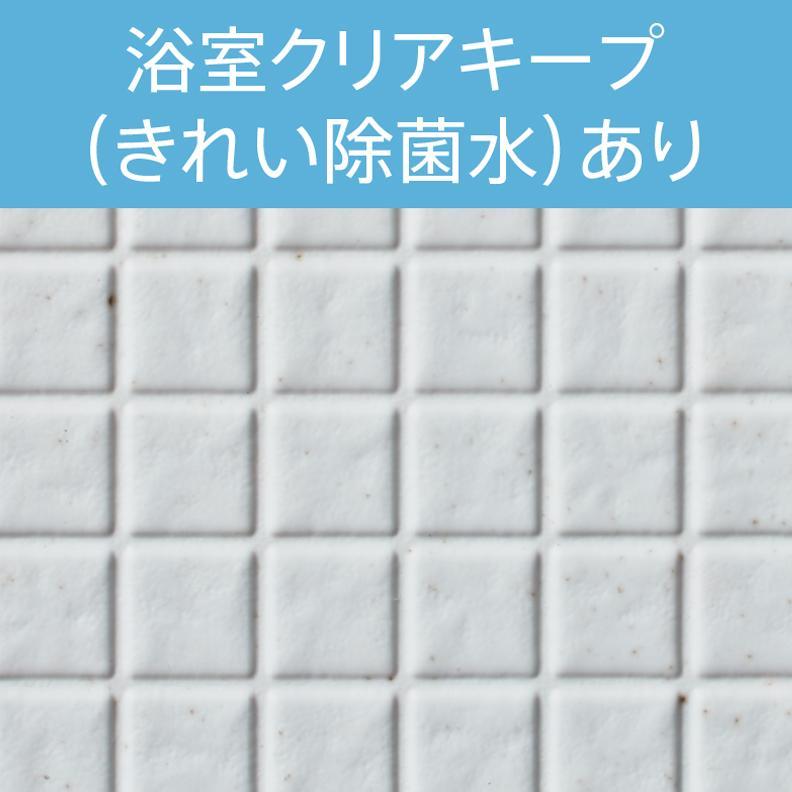 浴室クリアキープ(きれい除菌水)あり 対象:壁の上部。入浴後に1日1回「浴室クリアキープ(きれい除菌水)」を実施し、12週間お掃除せずに使用。
