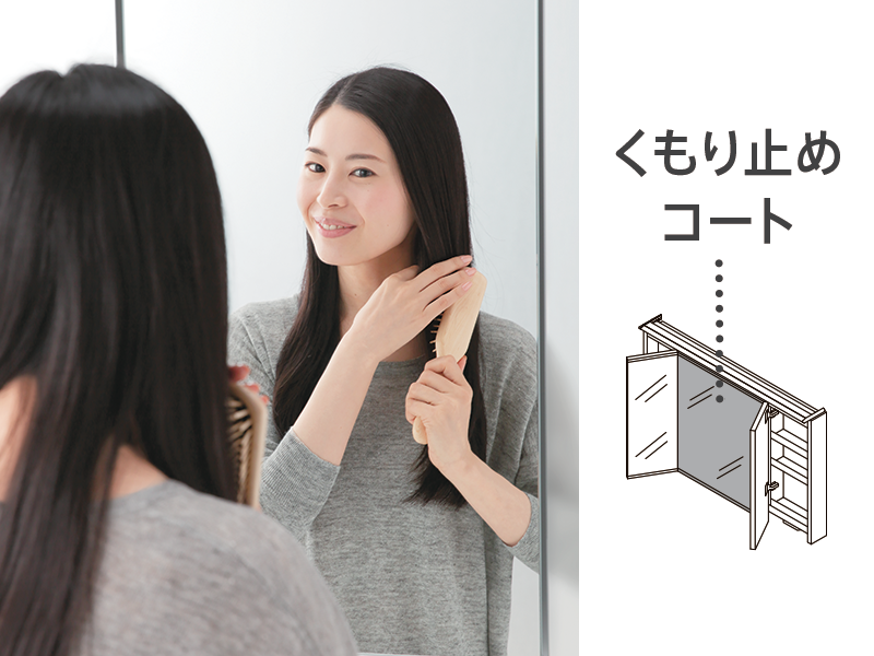 くもり止めコートした鏡は、電気を使わないエコ仕様。オン・オフの手間もなく、くもりが取れるまでの待ち時間がありません。