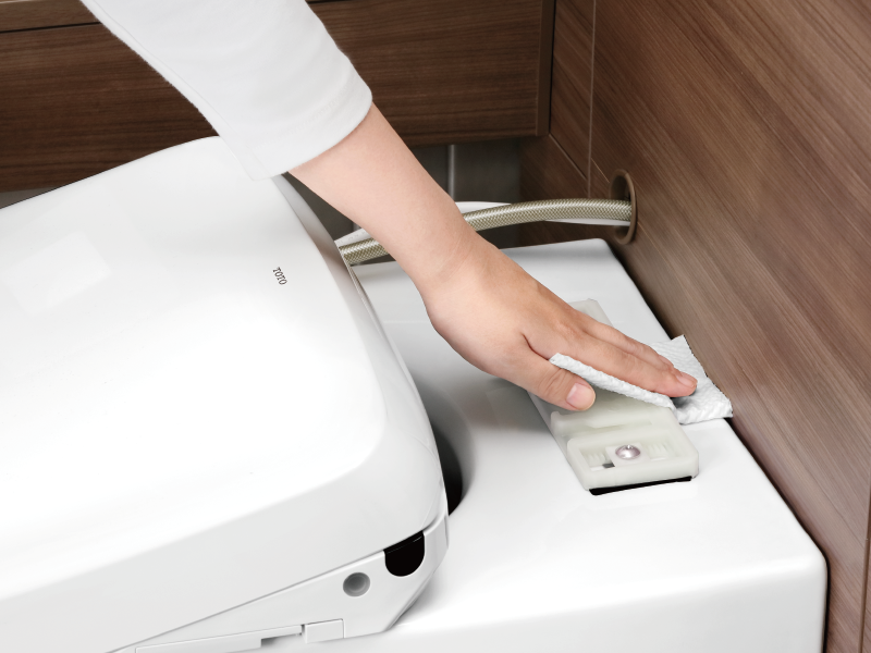 ウォシュレット本体を便座からカンタンに取り外せます。便座取り付け面、便座とキャビネットの間など、ふきにくかったところもラクにお掃除ができます。