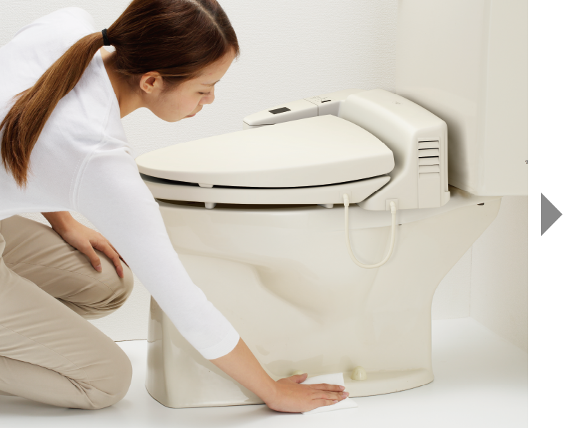 ウォシュレット本体を便座からカンタンに取り外せます。便座取り付け面、便座とキャビネットの間など、ふきにくかったところもラクにお掃除ができます。