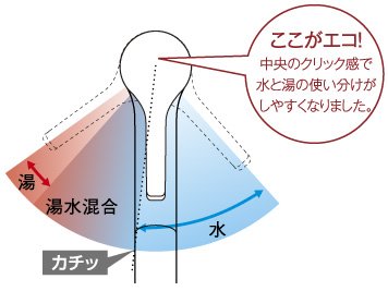 水と湯をしっかり使い分け、湯のムダ使いを防ぎます。