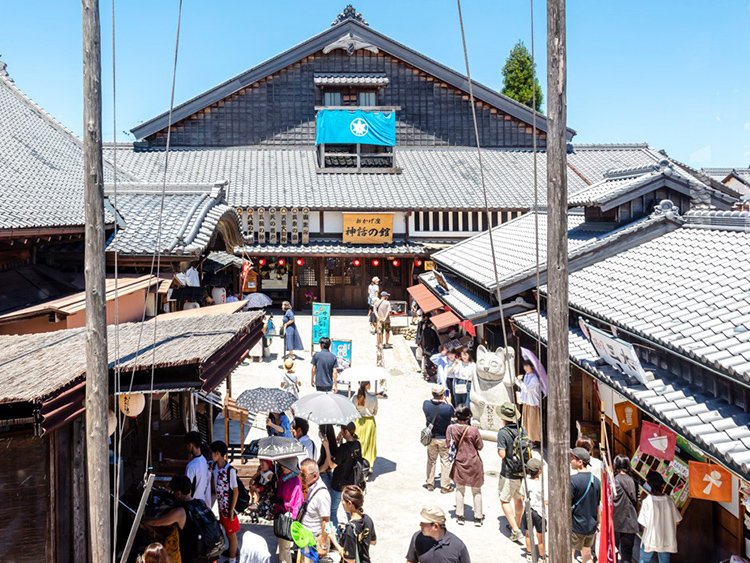 1993年、伊勢神宮内宮の鳥居前に江戸時代の街道の賑わいを取り戻し、地域の活性化を目的に開業。全国から訪れる参拝者に、伊勢の風土を楽しんでもらう場所として親しまれている。施設内は江戸から明治にかけての伝統的な町並みを移築などで再現。門は設けられておらず、入場料は無料。誰でも自由に出入りすることができ、気ままにまち歩きを楽しむことができる。伊勢神宮内宮の入り口である宇治橋からのびるのが、神宮の歴史とともに発展してきたおはらい町。長きにわたり参拝客で賑わってきましたが、昭和60年代(1985年ごろ)の往来者は年間約20万人と落ち込んでいました。