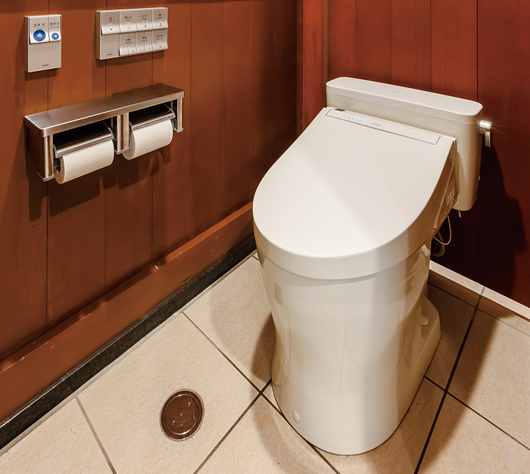 また、いつでも清潔で使いやすいトイレを維持するために細やかなメンテナンスは欠かせません。小便器は清掃担当者が巡回していないときも常に清潔を保つことができるよう、すべて自動洗浄型に入れ替えました。また、抗菌効果で臭いの原因となる菌を抑制するハイドロセラフロアも導入。多くの人が使うパブリック空間をより快適に保っています。なにかあればすぐに最寄りのTOTOメンテナンスが対応してくれるので、安心できるとも話してくれました。