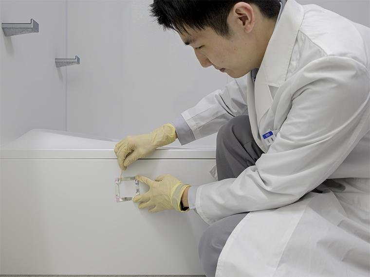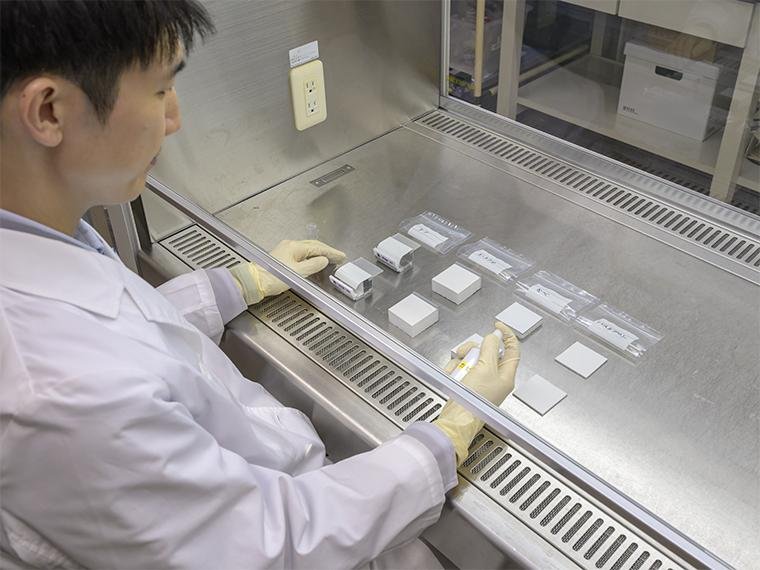 佐藤 あのときから開発チームと二人三脚が続きましたね(笑)。気化した除菌成分も菌も目に見えない微細なものですから、ちょっとしたことでも数値に違いが出てしまいます。研究所の試験環境と開発チームの環境が異なっており、試験の手順も細かい違いがありました。あのときは、各施設の水道水や付近の空気に含まれている成分まで違いがありそうなものを徹底的に調べました。