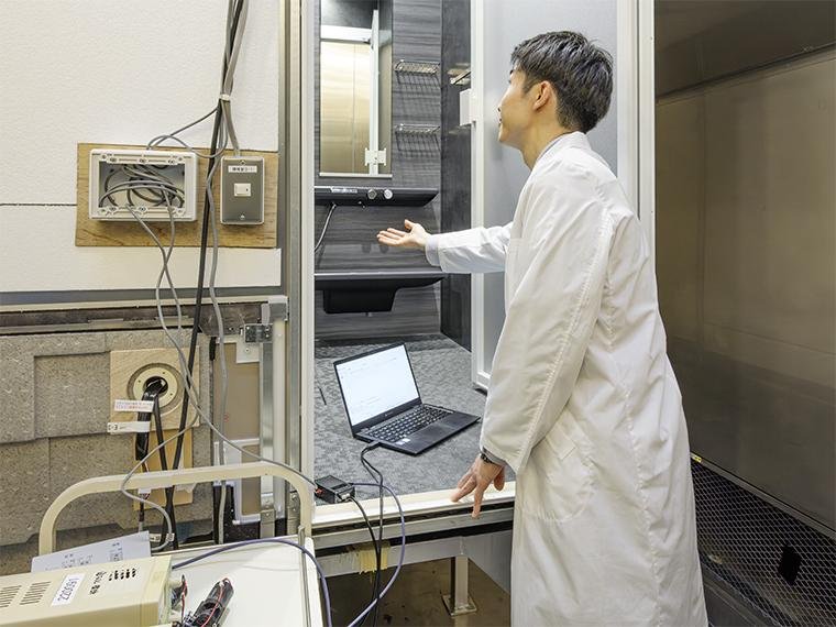 気化してどこにどれくらいの量が届いているのか。きれいを維持するためにはどのくらいの気化濃度があればいいのか。どのようにすれば、きれいを維持するために必要な気化濃度を浴室内で実現できるのか。この3点について、並行して進めていきました。手法を確立できたと思っても、急に数値がばらついたりして何を計測しているのかわからないという場面もありましたね。4~5人のチームで3年かけてその3点のデータを集めて、検証していきました。