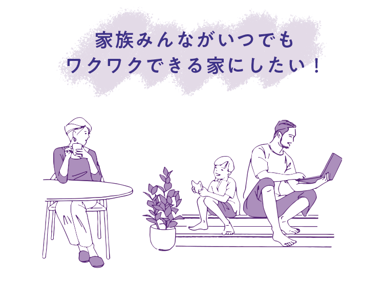 リビングにはスキップフロアを設けて、空間に変化をつけました。昼間はテレワーク、夜は家族の団欒スペースに。さらに子ども部屋もスキップフロアに。秘密の隠れ家みたいと、子どもは大喜び。廊下の壁には大好きなものを並べ、ワクワクが詰まった、思わずスキップしたくなる毎日です。