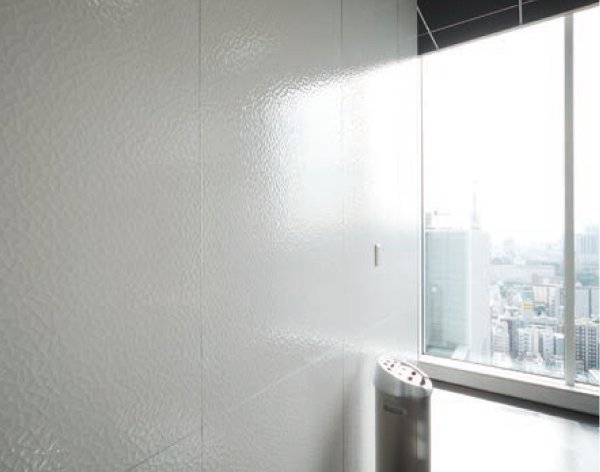 また、4か所の喫煙室には、おのおの異なる色柄のハイドロセラ・ウォールを使用。雰囲気づくりとともに、使用率が高い喫煙室の汚れ落ち・臭いの抑制効果に期待が集まっています。