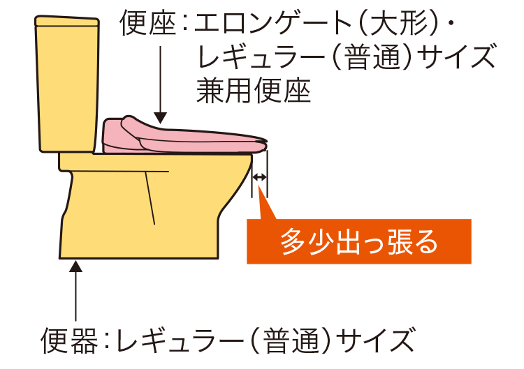 便座の先端が便器の先端より前出が大きくなったり、便器の縁が見えることがあります。