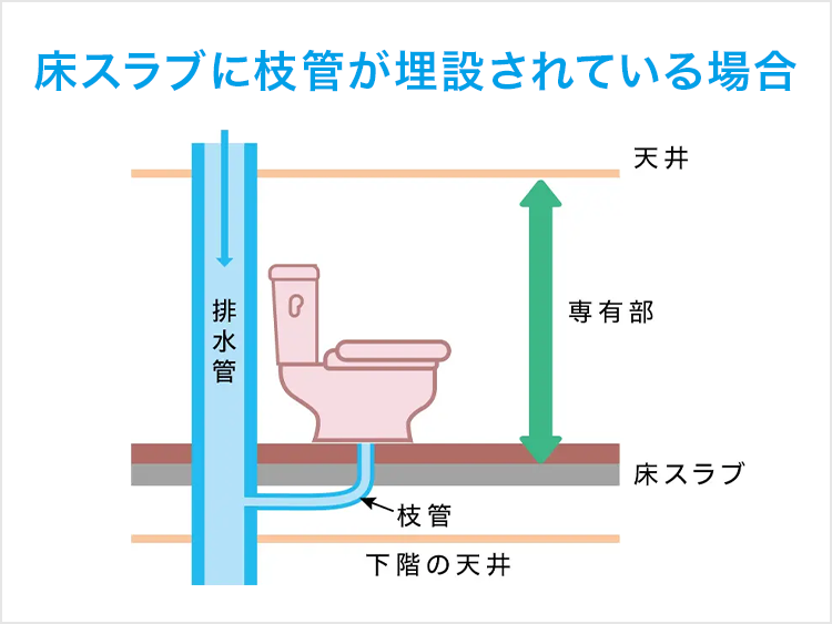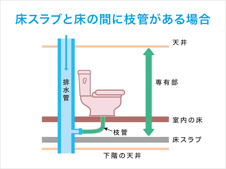 床の構造により、配管が専有部なのか共用部なのかが異なります。