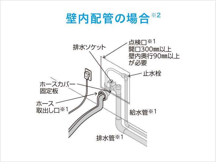 ※2 壁が設けられる前に配管工事が必要です。予め配管接続部材をご発注ください。