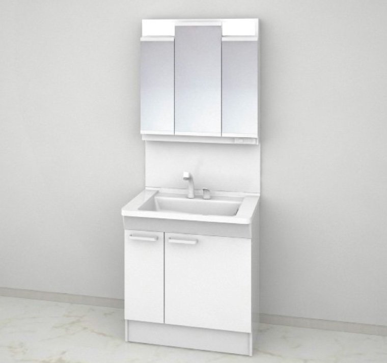 ∟サクアシリーズ(間口:750mm/化粧台:2枚扉または3WAY(扉色:ミドルクラス)/水栓:エアインスウィング水栓/化粧鏡:三面鏡(ベーシックLEDエコミラー)にリフォームした場合の調査結果をもとに参考価格を算出。