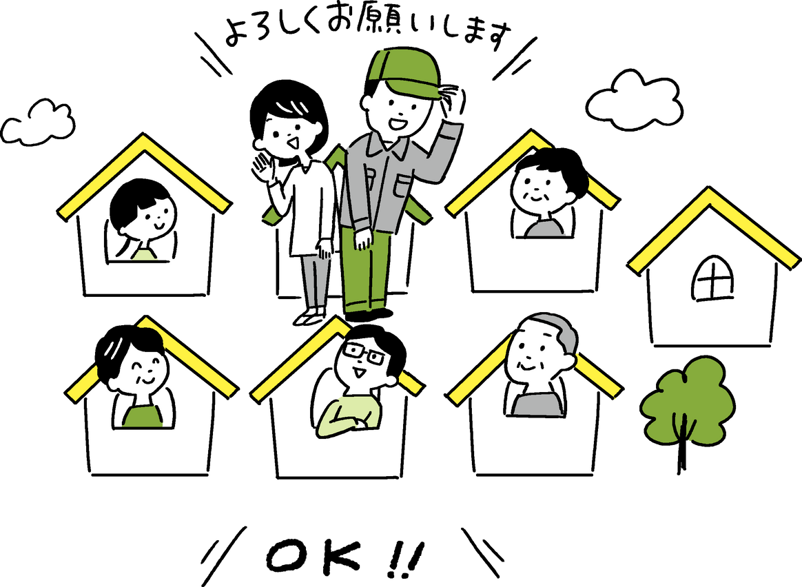 工事中は、車の出入りや騒音などご近所に何かとご迷惑をかけることが多いもの。事前にあいさつにまわり一言断っておきましょう。リフォーム店があいさつまわりを済ませてくれる場合もあります。