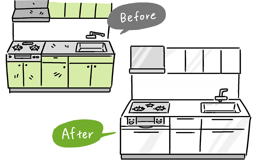 リフォームと一言にいっても、規模は様々。ここではキッチンを例に、3つの規模に分けてご紹介します。