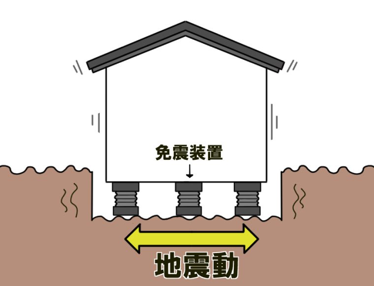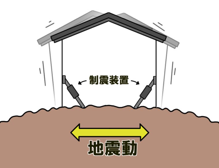 地震の衝撃とエネルギーを吸収し、建物に揺れが伝わらないようにする工法。建物と地面の間に「免震装置」を設置します。屋内の揺れを最小限に抑えられるため、タンスや本棚、冷蔵庫といった大きな家具・家電の転倒による怪我を防止することにもつながります。 | 建物に「粘り」をもたせることで、上階の振動を抑える工法。2階建て以上の建物の1階の壁に制震具を取りつけます。制震具が建物内に伝わる地震エネルギーを吸収するため、基礎や土台は揺れますが、2階以上の階の振動は抑えることが可能。梁や柱への負担が少ないのも特長です。 | 建物の骨組みの強度を増し、頑丈にすることで倒壊を防ぐ工法。筋交いや金具などを使って壁・床・屋根、土台と柱、柱と梁といった接合部分を補強します。 |