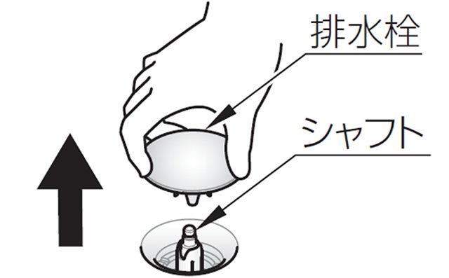 (排水栓を取り外した状態で、排水口のシャフトを無理に押し込もうとすると故障の原因になります。)