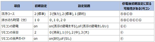おそうじ浴槽(ふろ洗浄)の設定(下記表)は、停電復旧後、初期状態に戻ることがあります。