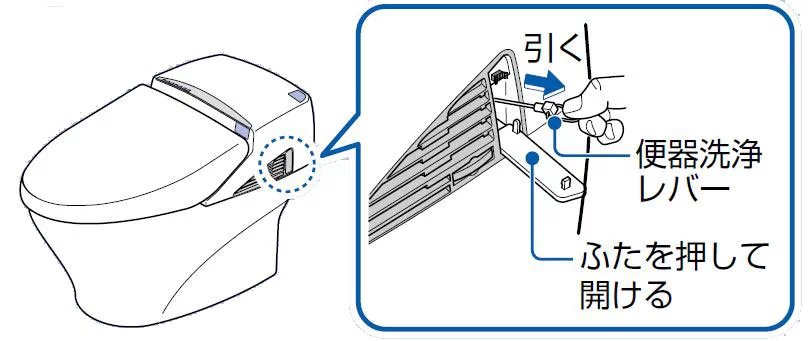 ■ 手動レバー(停電時便器洗浄用)で便器の水を流すことができます。