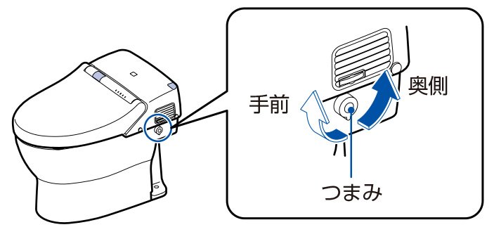 ① ウォシュレット本体右側面の手動レバーを取り出す