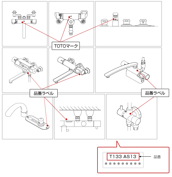 図を参考にTOTOマーク/品番ラベル位置をご確認ください。