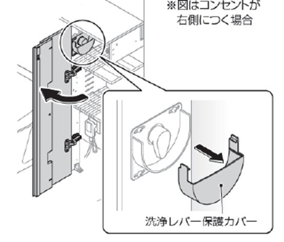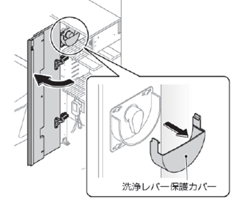 ・ 洗浄レバー保護カバーを外側に引いて外す