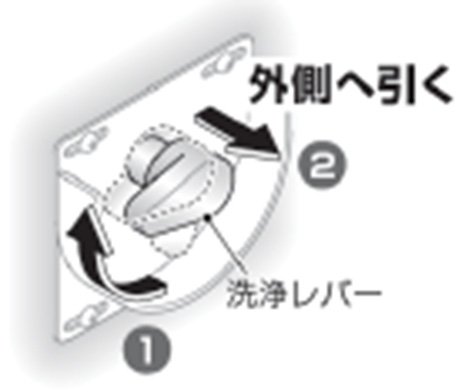 ・ 洗浄レバーを奥側いっぱいに回したまま外側に引く。