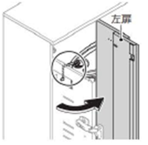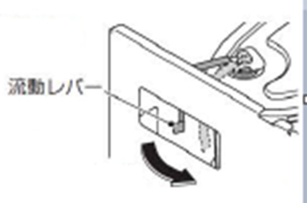 キャビネット開口部内側の流動レバーを手前へいっぱに引く。