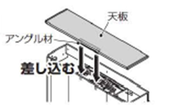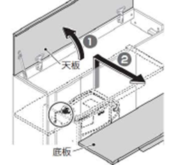 ・ 天板をキャビネットのダボに差し込んで、元に戻す。