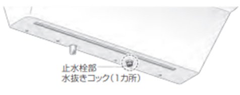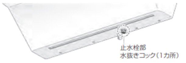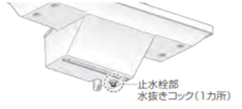カウンターの種類と設置位置により、止水栓部水抜きコックの位置が異なります。