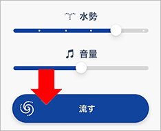 流すボタンをタップして、便器洗浄を行うことを確認してください。
