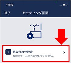 組み合わせ設定(下記の赤枠)をタップすると、ラベル読み取り画面になります。ラベルを読み取ってください。