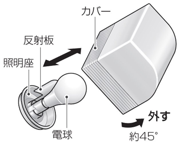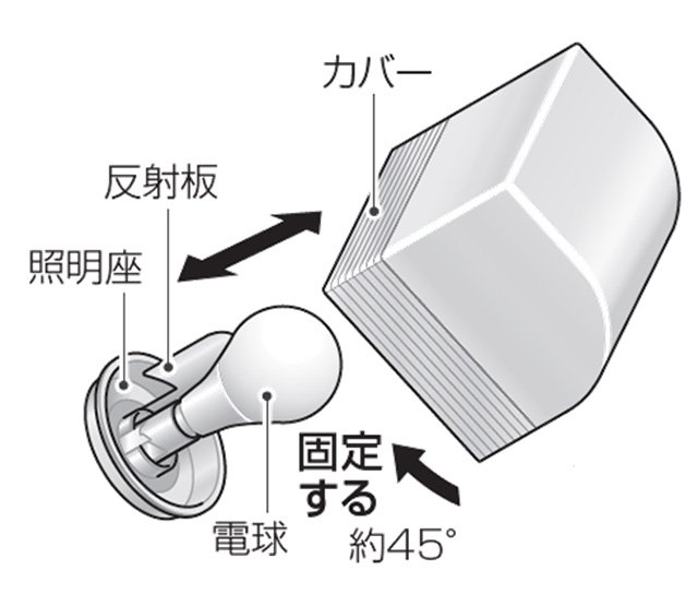 6-1. カバーを左に約45°傾けて照明座に差し込む。