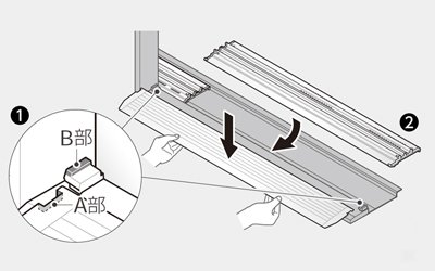 1. 下枠カバーのA部を下枠のB部に合わせてはめ込みます。