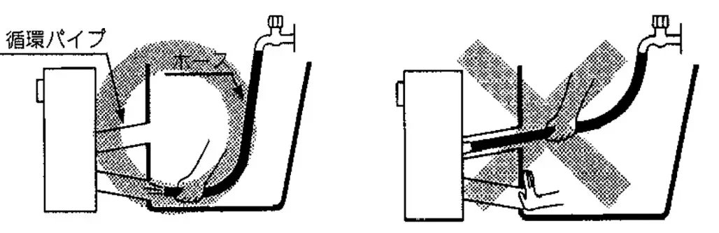 2. 上の穴から湯あかのかたまりが出なくなるまで、勢いよく水を流します。