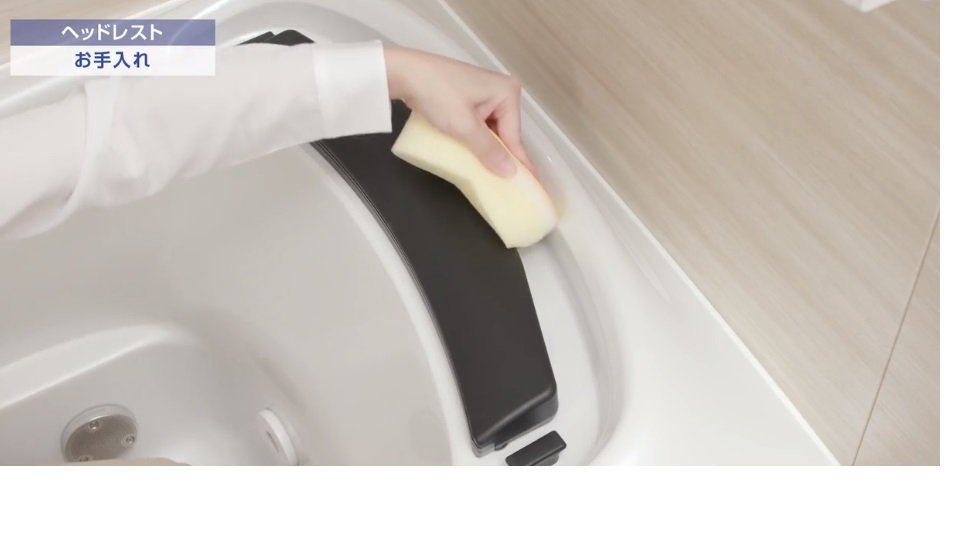 2. 浴室用中性洗剤をつけた柔らかいスポンジで、浴槽側のヘッドレスト取り付け部を洗う。