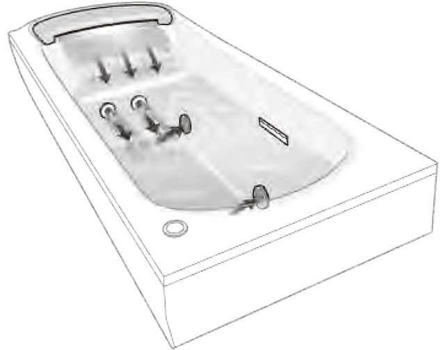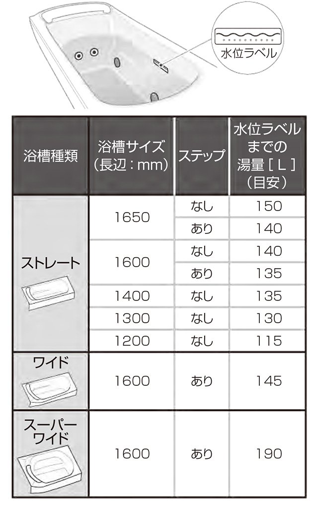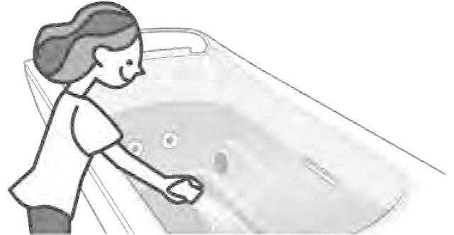 2. 38~42℃(※1)のお湯を 水位ラベル以上(※2)に(吸込口、腰楽湯吐水口が完全に水につかるように)入れる。
