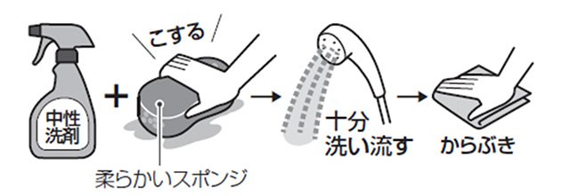 シャワーで洗い流した後、柔らかい布でから拭きします。