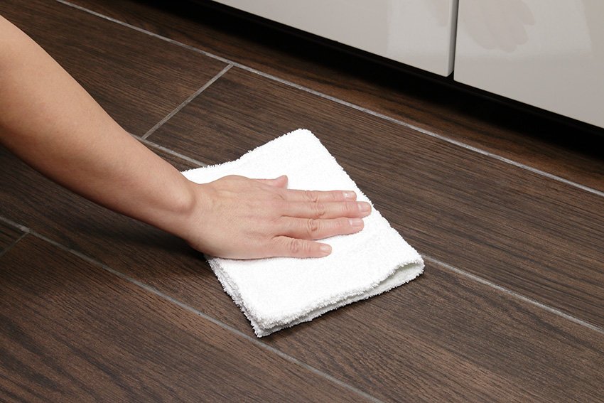 2. ぬるま湯につけて固く絞った布で拭き、次にから拭きします。