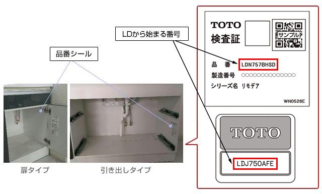 図を参考にTOTOマーク/品番ラベル位置をご確認ください。