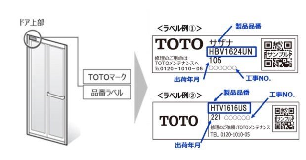 浴室のドア上にある品番ラベルの二次元コードを読み取り、部品品番が確認できます。