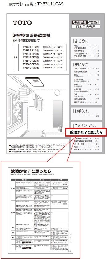 お使いの三乾王・暖房換気扇の取扱説明書「故障かな?と思ったら」ページをご確認願います。取扱い説明書はこちら