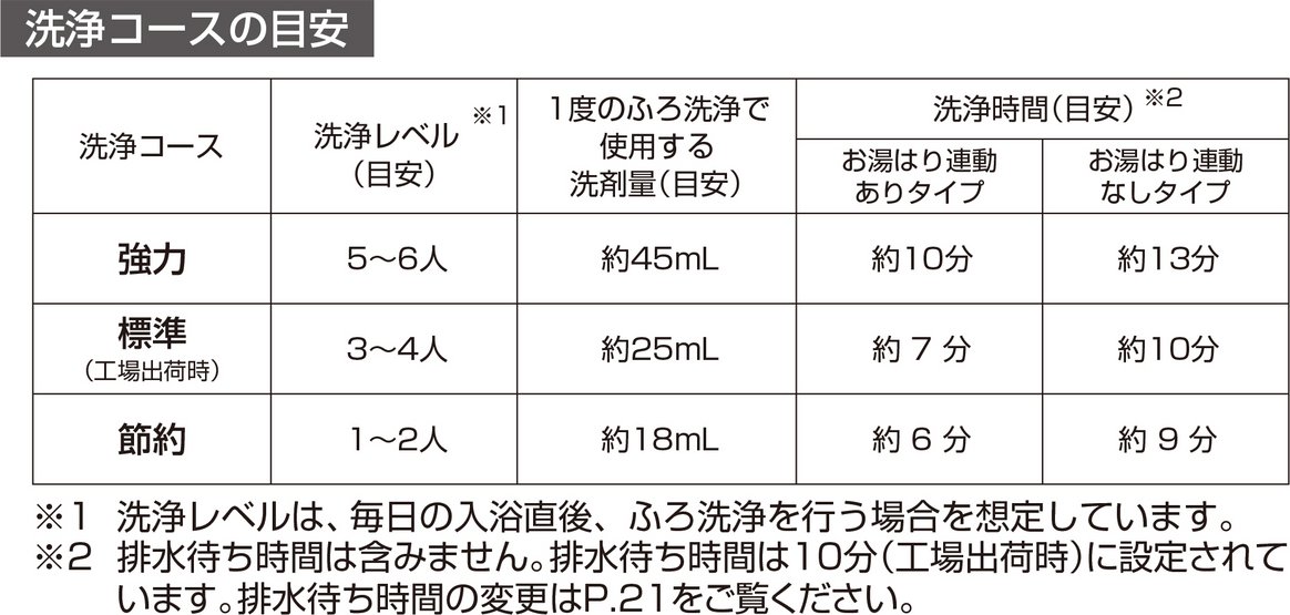以下のような場合は、汚れやぬめりが落ちにくくなります。入浴後すぐまたは排水後すぐにふろ洗浄してください。