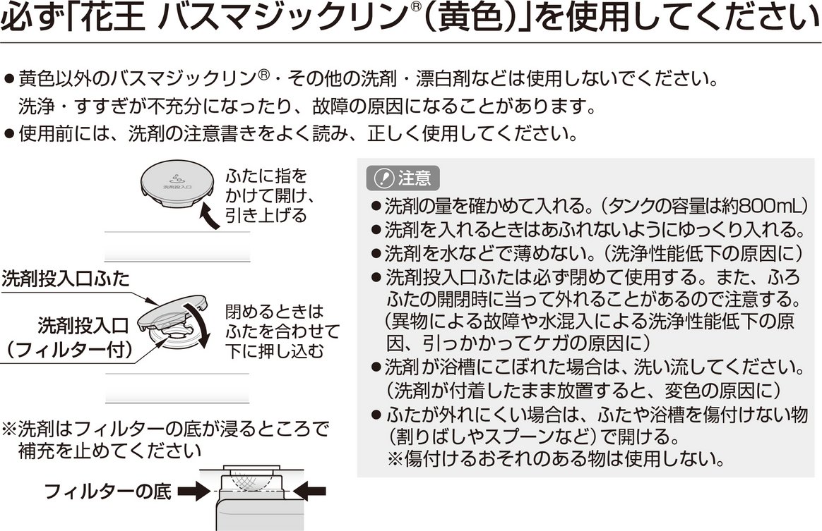 初めてご使用になられる時は洗剤タンク洗剤を補充してからご使用ください。