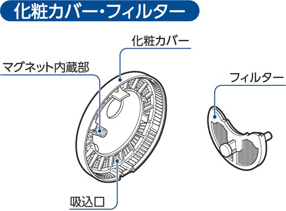 化粧カバーまたはフィルターのどちらかが正しくセットされていない場合は、安全装置が作動し、ブロー運転しません。
