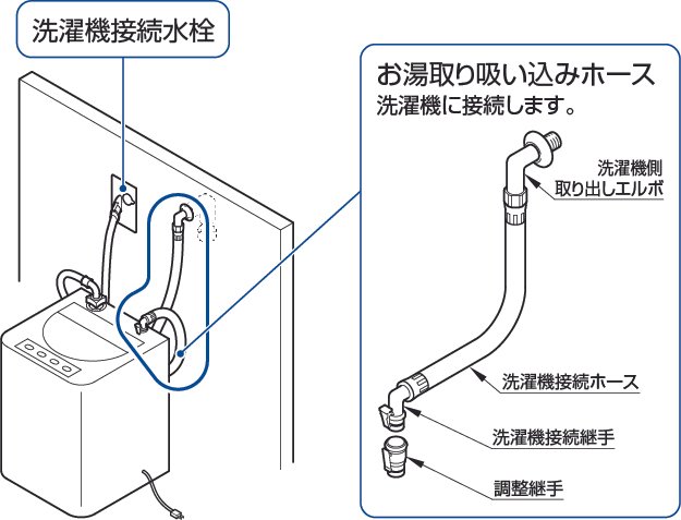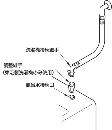 ※調整継手は東芝製洗濯機の場合に使用します。東芝製以外で使用すると空気を吸い込み、ポンプが働きません。
