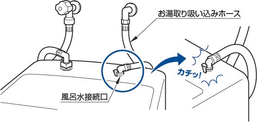 洗濯機の風呂水接続口に洗濯機接続継手が確実に差し込まれているか確認してください。